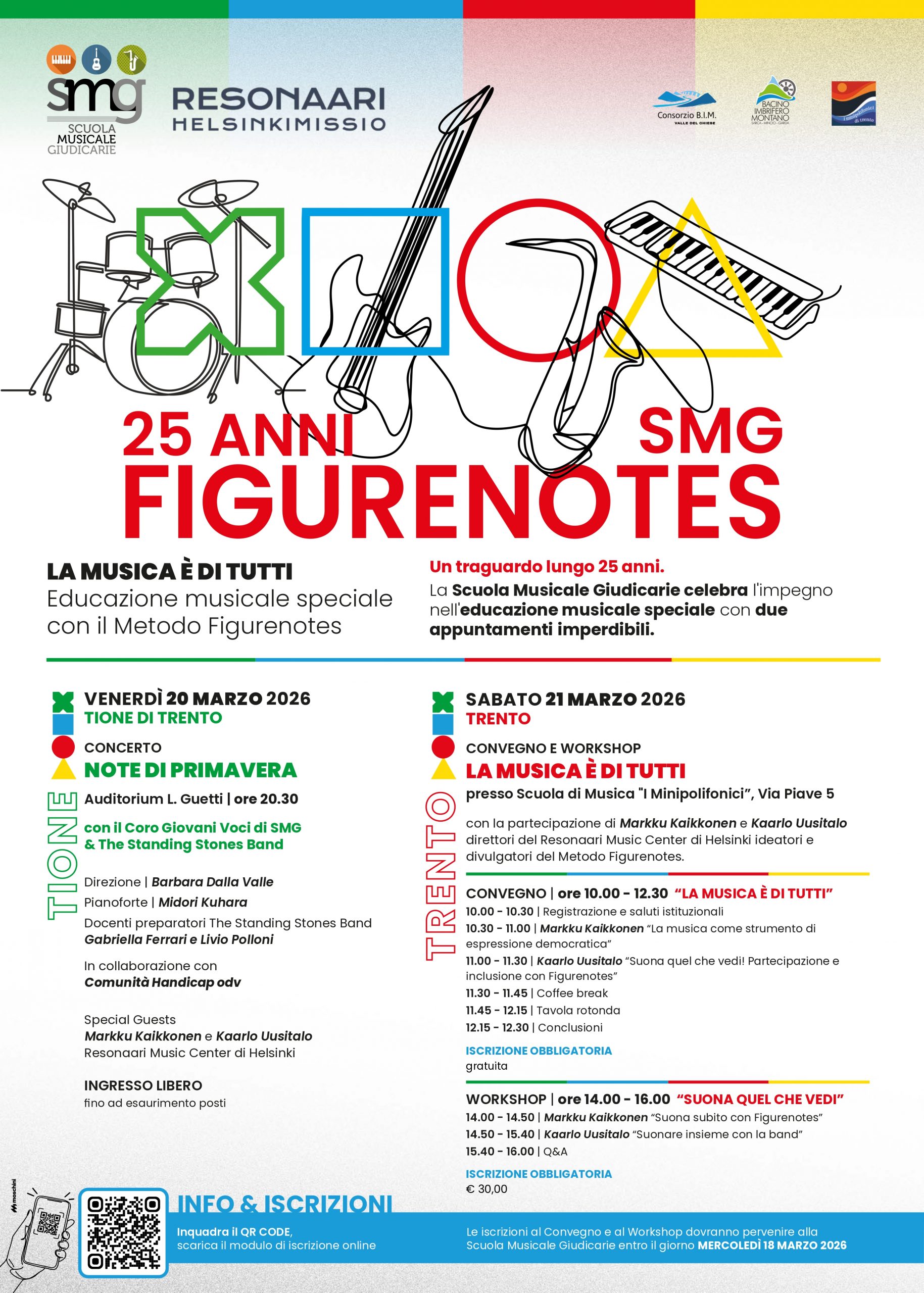 La Scuola Musicale Giudicarie celebra l’impegno nell’educazione musicale speciale con due appuntamenti imperdibili! Venerdì 20 marzo – Concerto NOTE DI PRIMAVERA – Tione di Trento Sabato 21 marzo – Convegno e workshop LA MUSICA E’ DI TUTTI – Trento Informazioni dettagliate nella locandina scaricabile al link. Per le iscrizioni al convengo ed al workshop […]